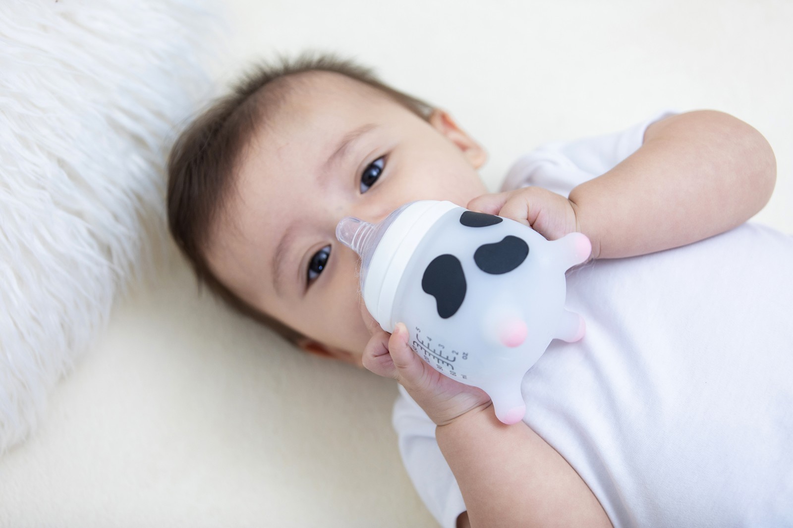 宝宝爱喝。说到底为什么断奶难,宝宝对喝奶的需求得不到满足或者是体验有区别的时候,情绪会得不到安抚。怎么做到让宝宝爱上喝奶,一定是出奶顺畅,没有胀气呛奶的体验是最佳。BK玩具奶牛瓶拥有专利的底部一体式回气阀,打破了传统的奶嘴回气的设计,有效的避免了胀气和呛奶,给宝宝轻松喝奶的体验。