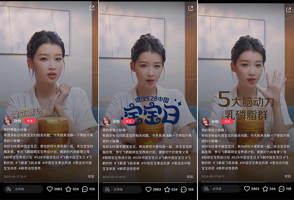 在这一波走心的视频分享中,飞鹤“脑发育”的观点被完美输出,自然植入,加深了用户“飞鹤528宝宝日”的心智,让品牌产品更强势有效地融入消费者的生活。视频最后,她号召大家参与飞鹤宝宝养成计划,做新时代的智慧父母,发布笔记,晒出自己家的聪明宝贝。